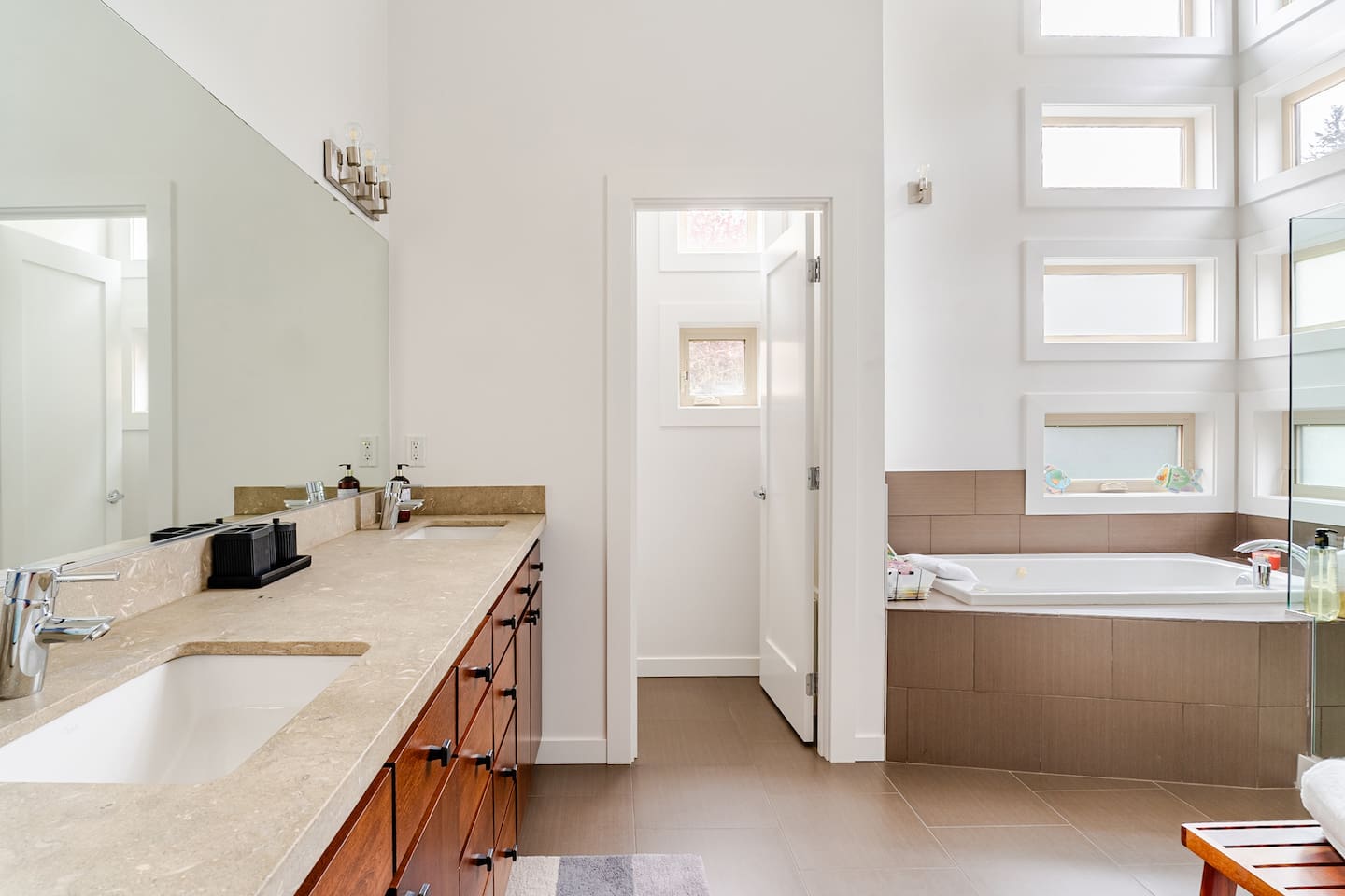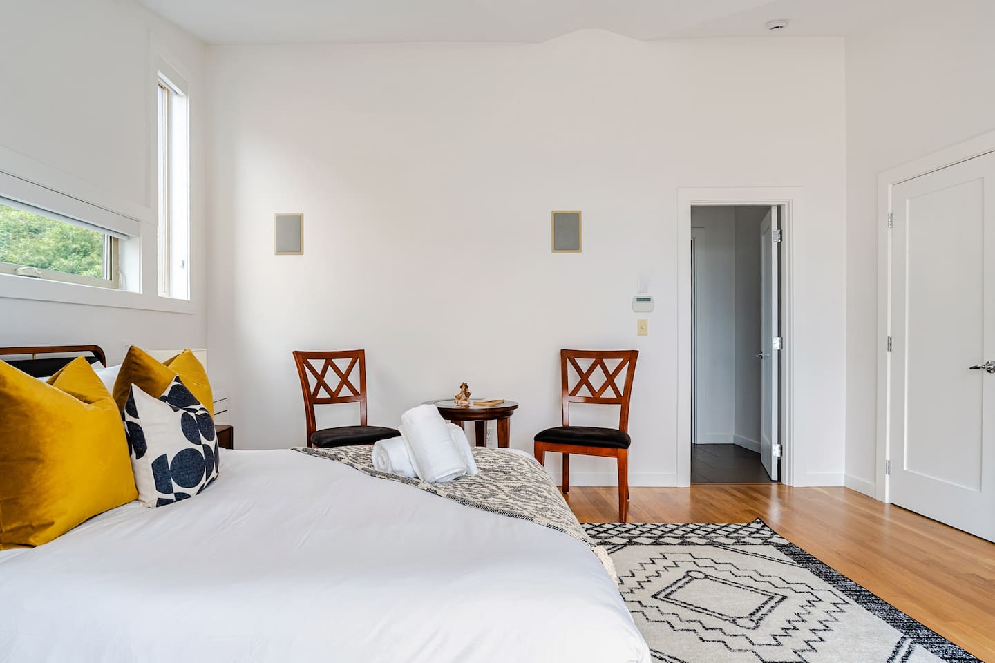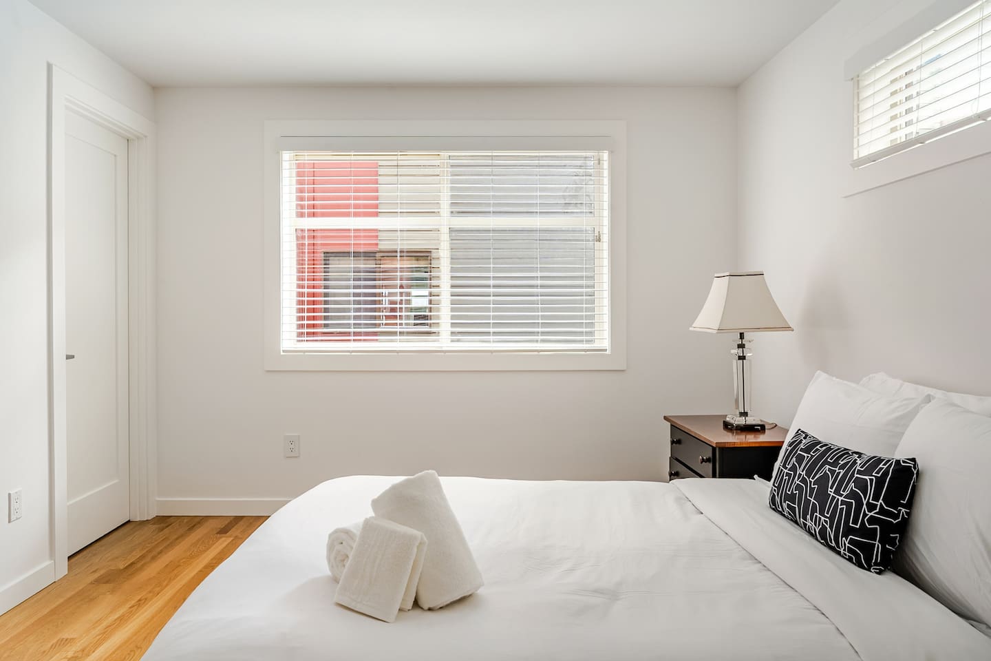 / nightMinutes from Seattle Children’s, UW Medicine, and Fred Hutch. Light-filled luxury townhome across from Lake Washington with easy access to Magnuson Park and the Burke-Gilman Trail. Enjoy an open-concept layout, chef’s kitchen, and radiant heated floors. Top-floor primary suite features a spa-like en-suite bath and private balcony. Two additional bedrooms sit on the entry level, while a lower-level office and recreation room offer the perfect setup for remote work or extended stays. Welcome to your modern Seattle retreat, ideally located along Sand Point Way with unmatched convenience for medical professionals, patients, and families visiting the area. The home is just minutes from Seattle Children’s Hospital, UW Medicine, and Fred Hutchinson Cancer Center—making it an ideal home base for extended stays, treatment visits, or work assignments. Inside, the home features a bright, open-concept main level with large windows, hardwood floors, and a cozy gas fireplace—perfect for relaxing after a long day. The chef’s kitchen is fully equipped with quartz countertops, stainless steel appliances, and ample storage for comfortable, longer-term living. The home includes three spacious bedrooms. The top-floor primary suite features a spa-like en-suite bathroom and generous closet space, while the additional bedrooms are well-sized and conveniently located near shared bathrooms—ideal for families or groups. Additional features include radiant heating and in-unit laundry. Step out onto the private balcony for fresh air, or enjoy being directly across from Lake Washington with easy access to Magnuson Park, Matthews Beach, and the Burke-Gilman Trail. Please note that parking within the townhome community is limited; however, there is abundant public parking available along Sand Point Way and at nearby Magnuson Park. The location also offers quick access to University Village, the University of Washington campus, and downtown Seattle—balancing convenience, comfort, and accessibility. Guests will have full private access to the home, including all bedrooms, bathrooms, kitchen, living and dining areas, and private balcony. Please note: The garage is not included in guest access. Guests are kindly asked to park off-street along Sand Point Way, as parking within the townhome community is extremely limited. Enjoy a seamless, contactless check-in and check-out experience for maximum convenience and privacy. While we respect your space, we’re always just a call or text away if you need anything during your stay—we’re happy to help anytime.