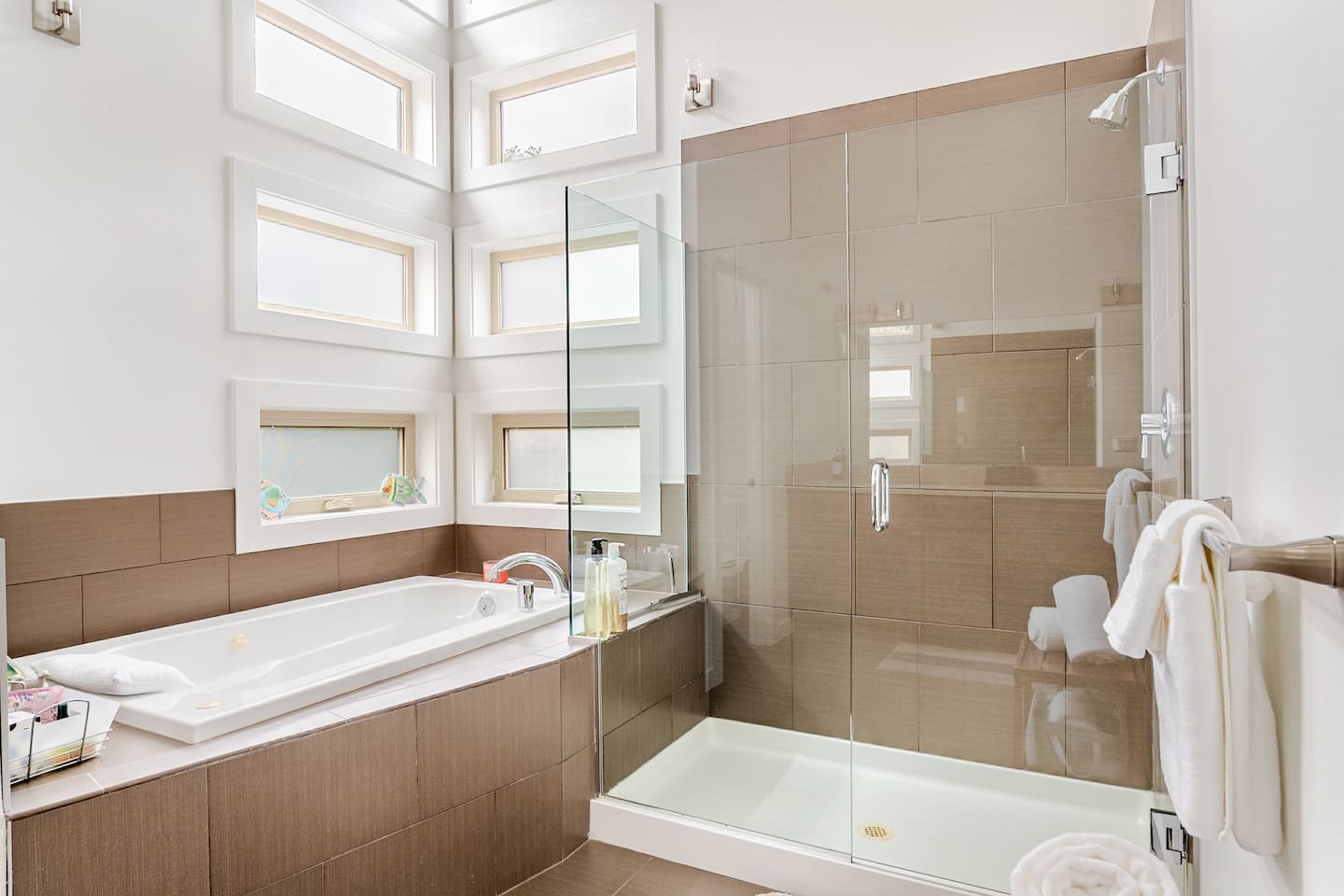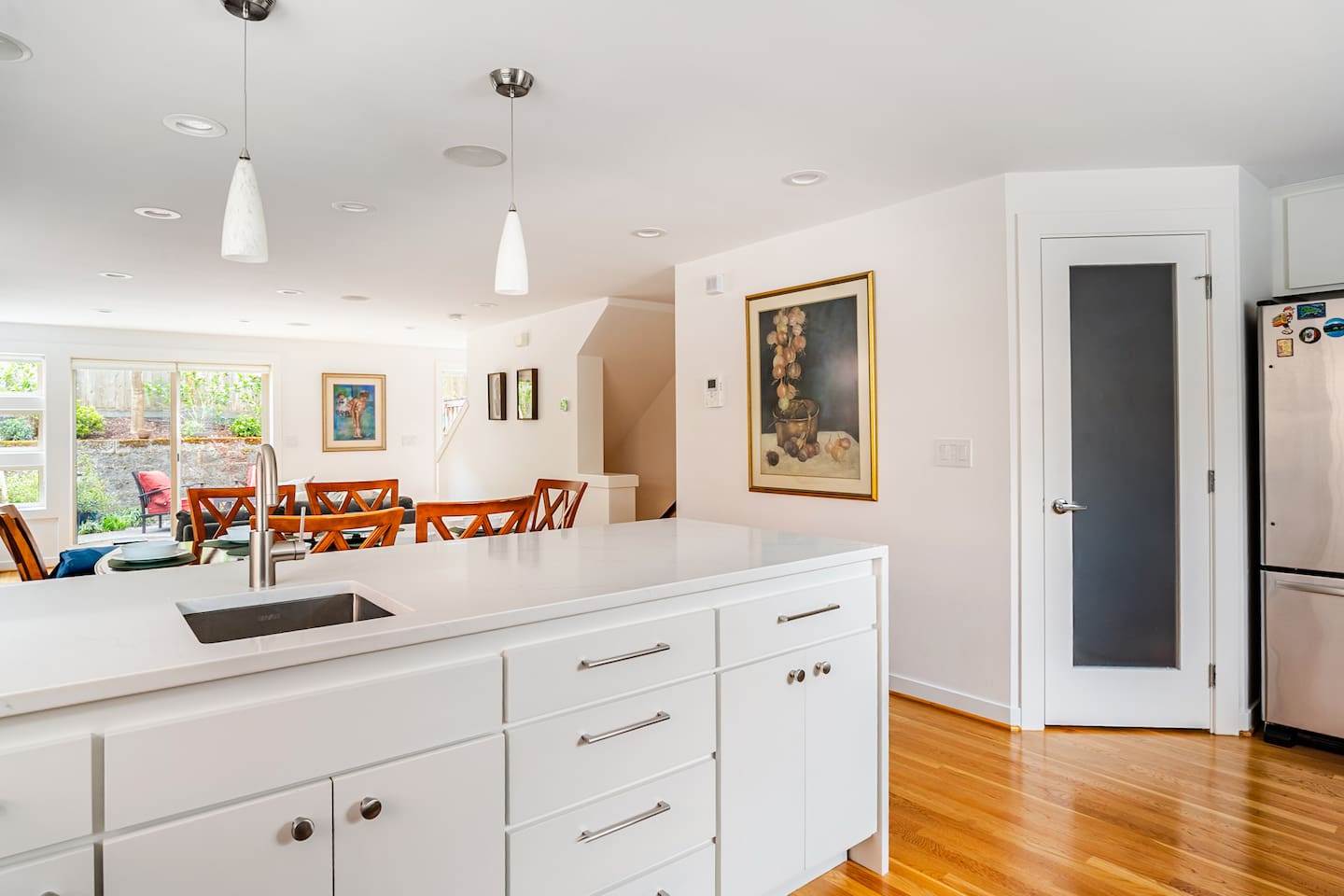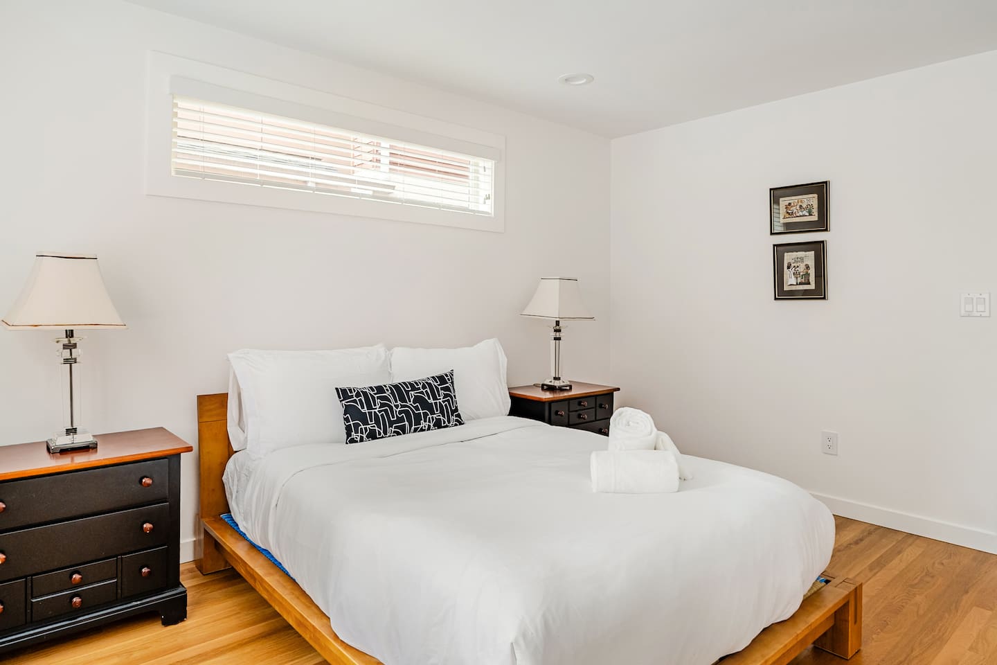 / nightMinutes from Seattle Children’s, UW Medicine, and Fred Hutch. Light-filled luxury townhome across from Lake Washington with easy access to Magnuson Park and the Burke-Gilman Trail. Enjoy an open-concept layout, chef’s kitchen, and radiant heated floors. Top-floor primary suite features a spa-like en-suite bath and private balcony. Two additional bedrooms sit on the entry level, while a lower-level office and recreation room offer the perfect setup for remote work or extended stays. Welcome to your modern Seattle retreat, ideally located along Sand Point Way with unmatched convenience for medical professionals, patients, and families visiting the area. The home is just minutes from Seattle Children’s Hospital, UW Medicine, and Fred Hutchinson Cancer Center—making it an ideal home base for extended stays, treatment visits, or work assignments. Inside, the home features a bright, open-concept main level with large windows, hardwood floors, and a cozy gas fireplace—perfect for relaxing after a long day. The chef’s kitchen is fully equipped with quartz countertops, stainless steel appliances, and ample storage for comfortable, longer-term living. The home includes three spacious bedrooms. The top-floor primary suite features a spa-like en-suite bathroom and generous closet space, while the additional bedrooms are well-sized and conveniently located near shared bathrooms—ideal for families or groups. Additional features include radiant heating and in-unit laundry. Step out onto the private balcony for fresh air, or enjoy being directly across from Lake Washington with easy access to Magnuson Park, Matthews Beach, and the Burke-Gilman Trail. Please note that parking within the townhome community is limited; however, there is abundant public parking available along Sand Point Way and at nearby Magnuson Park. The location also offers quick access to University Village, the University of Washington campus, and downtown Seattle—balancing convenience, comfort, and accessibility. Guests will have full private access to the home, including all bedrooms, bathrooms, kitchen, living and dining areas, and private balcony. Please note: The garage is not included in guest access. Guests are kindly asked to park off-street along Sand Point Way, as parking within the townhome community is extremely limited. Enjoy a seamless, contactless check-in and check-out experience for maximum convenience and privacy. While we respect your space, we’re always just a call or text away if you need anything during your stay—we’re happy to help anytime.