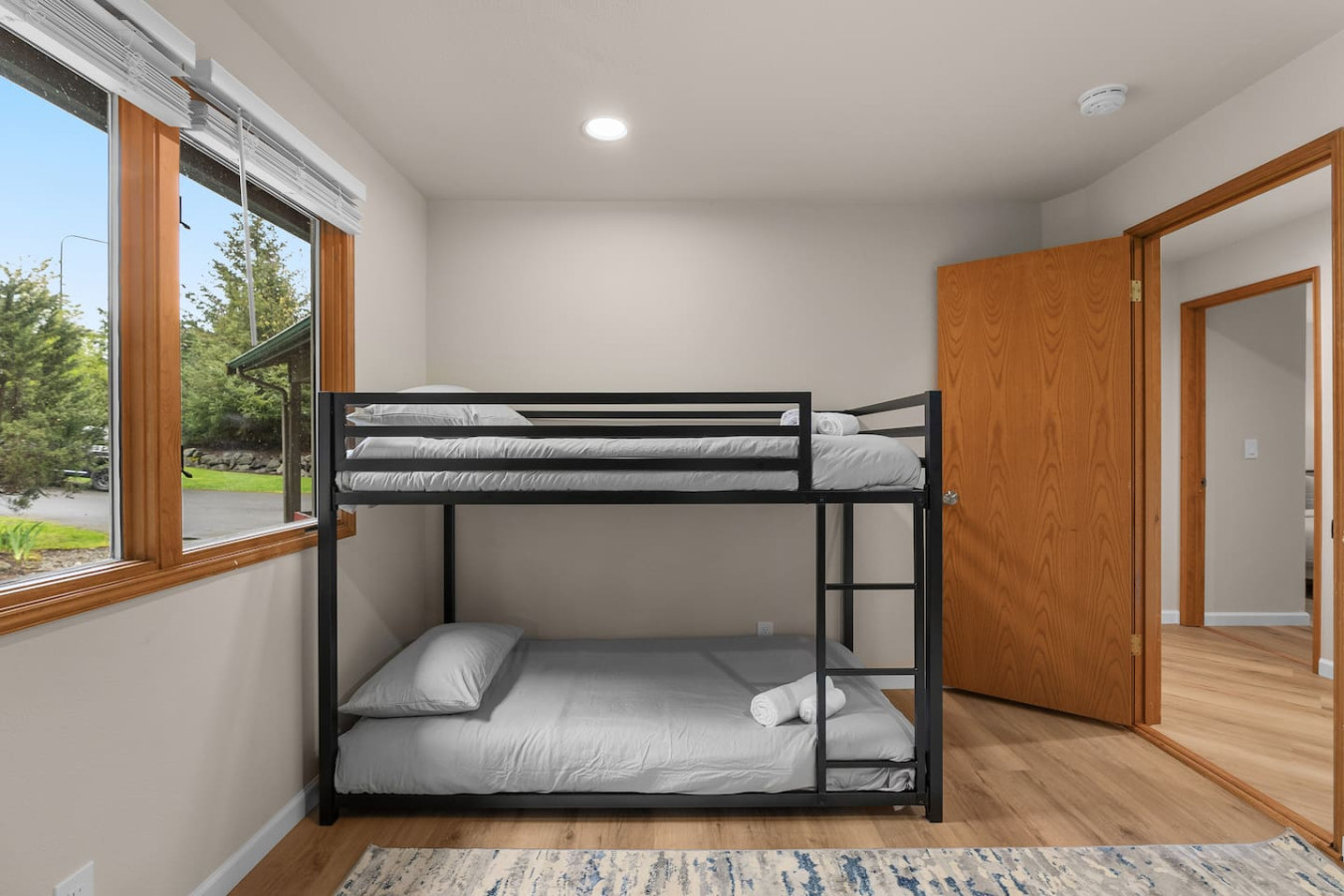 For family events, we like to rent a larger house with a great kitchen and common area and then invite our adult kids to stay with us instead of hotels. This house met our requirements exactly and was perfect for us. It was clean, very roomy, and close to where we needed to be to visit with our other family. The hosts are really great—responsive to our questions, and check-in/check-out was super easy. The location is great (5 minutes to a shopping area and coffee shops, 35 minutes from the airport), but you have to be alert to see the driveway - I have to admit I drove past it more than once. But the house, near a little creek (but not too close) with big window on to the green trees and year, a huge deck and wonderful kitchen was just what we needed. Super quiet! The bunk bed was a plus for our 4-year-old grandchild, and we had 4 adults in with plenty of room for all. Since we have family in the area, this house will be on our regular rotation. We are super happy we found it.