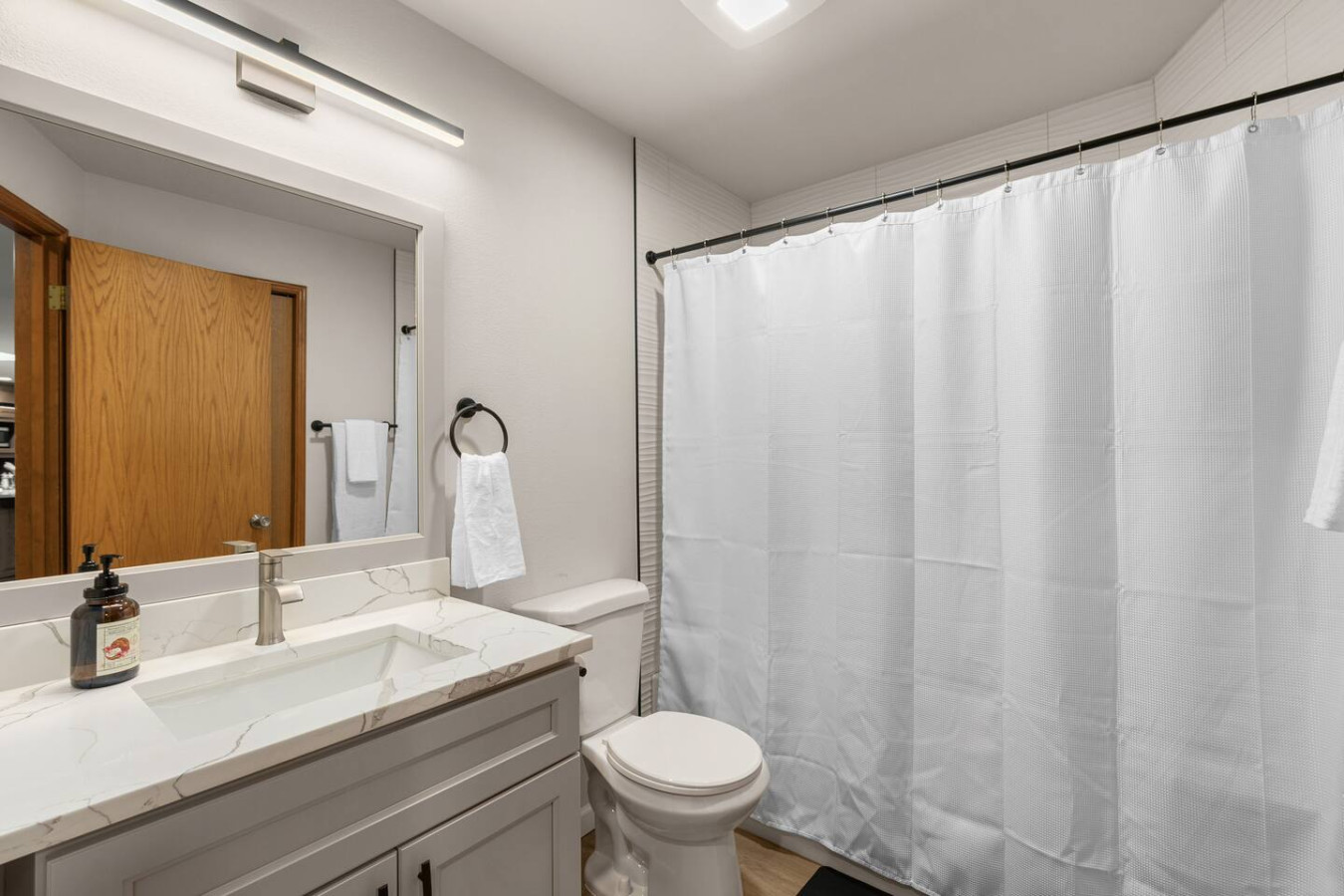 We enjoyed our stay here and the amenities were excellent. The kitchen was equipped and the bathrooms were extremely clean. Check out was a breeze and made the stay very comfortable. The beds were very comfortable and the linens were so soft and the pillows were high quality. Much better than any hotel.