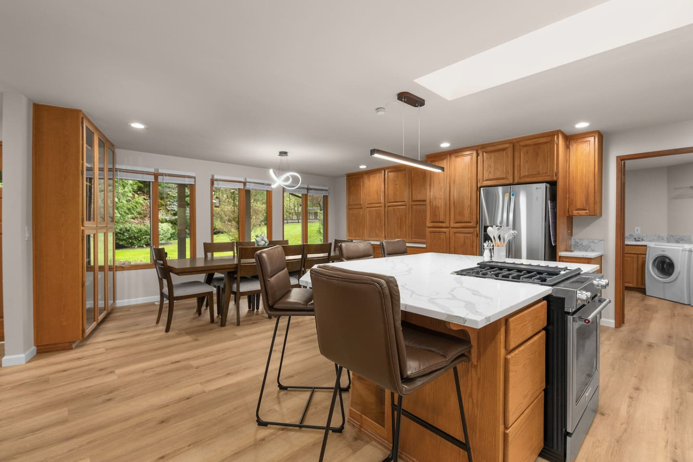 We had a fantastic time at this stunning home in Issaquah! It's been impeccably renovated, giving it a fresh, modern feel. The spacious yard and wrap-around deck were ideal for our group gatherings. With cozy beds, ample sleeping arrangements, and a well-equipped kitchen and laundry facilities, our stay was nothing short of delightful. We're already looking forward to our next visit to this wonderful home!